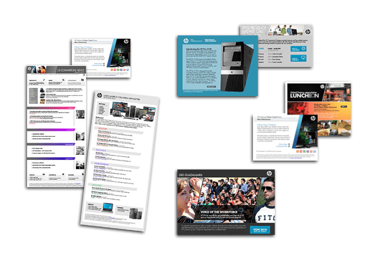 Identifying each of the audiences (Global Sales, Software, Printing, Americas Resale, local employees…) and developing a dedicated visual language, following corporate brand guidelines, giving each one its own identity for their respective feed.